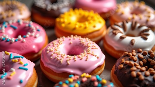donut, donut, assortment, variety, colourful, delicious, sweet, treat, closeup, food, dessert, pastry, baked, pink, yellow, chocolate, sprinkle, frosting, glazed, sweet food, confectionery, bakery, snack, temptation, diet, circle, sugar, background, table, tasty, deliciously, breakfast, lunch, dinner, holiday, party, celebration, indulgence, homemade, studio shot, macro, still life, sweetness, sharpened, group, collection