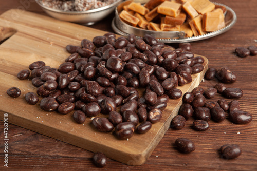 Assortment of delicious chocolate candies background. Chocolate candy isolated