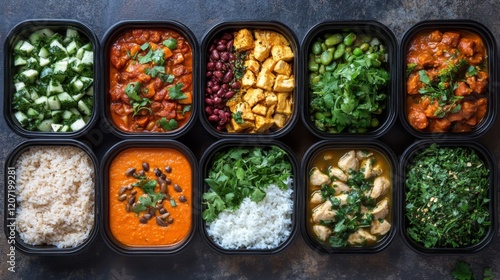 meal, healthy, food, diet, lunch, dinner, cookery, receipe, vegetarian, vegan, non, indian, rice, bean, vegetable, curry, chicken, tofu, container, prepared, meal, eating, fitness, weight, loss, nourishment, delicious, tasty, flavorful, fresh, home, cooking, easy, quick, convenient, eat, lifestyle, photo, top, view, flat, lay, styling, eatery, catering, take, away