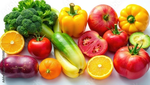 Assortment of organic fruits & vegetables isolated on white, sustainable, isolated