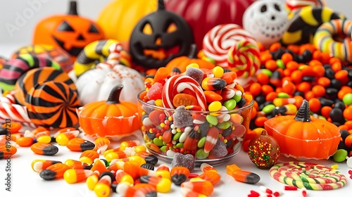 candy, halloween, pumpkin, lollipop, skittish, treat, sweet, autumn, holiday, goodie, snack, festive, cosy, cheerful, colourful, still life, arrangement, table, counter, background, design, pattern, texture, gum, jelly, marshmallow, gummy, dessert, confection
