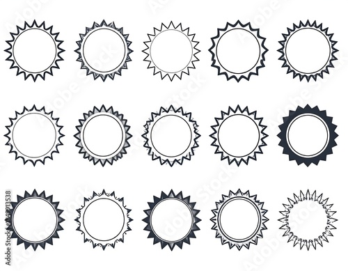 Assortment of starburst circular badge variations in grayscale