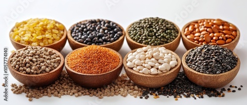 bean, grain, lentil, seed, food, ingredient, kitchen, cooking, healthy, nourishment, diet, variety, texture, colours, white background, assortment, collection, natural, organic, vegan, vegetarian, protein, fiber, pulse, culinary, epicure, still life, closeup, macro, legume
