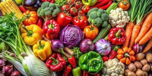 Assortment of various fresh and colorful vegetables in a large collection, vegetables, collection, varied, fresh, colorful