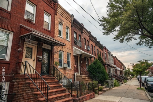 Astoria Queens NY - Charming Row of Old Brick Homes, Copy Space Left