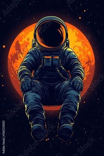 astronaut, space, planet, orange, red, cosmos, universe, galaxy, star, night, dark, floating, exploration, adventure, science, fiction, fantasy, illustration, graphic, design, art, digital, painting, drawing, futuristic, cosmic, celestial, mysterious, huge, infinite, solitude, lonely, peaceful, calm, serene, quiet, stillness, helmet, boot, glove, oxygen, astronaut