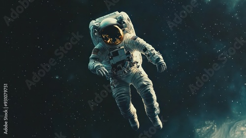 Astronaut floating in space with Earth in the background, representing exploration and the vastness of space