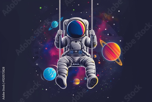 Astronaut having fun on the moon: creative illustration for t-shirt design