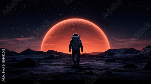 astronaut, mars, sunset, landscape, space, exploration, science, adventure, mountain, sky, celestial, night, horizon, cosmic, solitude, journey, discovery, atmosphere, imagination, universe, technology, dream, distant, travel, futuristic, environment, terrain, glow, starlight, science fiction, photo, outdoors, visual, twilight, epic, mystery, nature, colours, high-coloured, surreal, majestic, reality, scene, artistic, stunning
