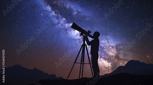 Astronomer Observing the Milky Way Galaxy Through a Telescope at Night