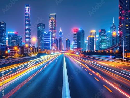 night, car, city, road, street, speed, traffic, transportation, motion, driving, highway, horizontal, photo, modern, no people, long exposure, city street, lighting equipment, illuminated, city landscape, headlamp, outdoors, skyscraper, business, city life, architecture, time, technology, built structure, capital city, dirt road, travel, tail, light, street light, futuristic, red, fast, asphalt, crowded