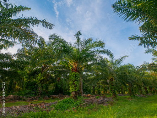 At the plantation of palm trees