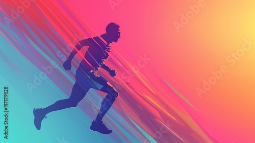 running, silhouette, runner, abstract, background, colourful, dynamic, speed, energy, determination, goal, motivation, fitness, athlete, sport, active, lifestyle, movement, motion, vibrant, bright, graphic, design, illustration, digital artwork, artwork, abstract art, modern art, gradient, stripes, line, diagonal, perspective, action, success, achievement, passion, inspiration, creativity, powerful, optimistic, future