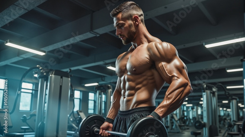 Athletic Male Bodybuilder Training with Dumbbells in Modern Gym – Muscular Physique Workout for Fitness Motivation and Sports Marketing