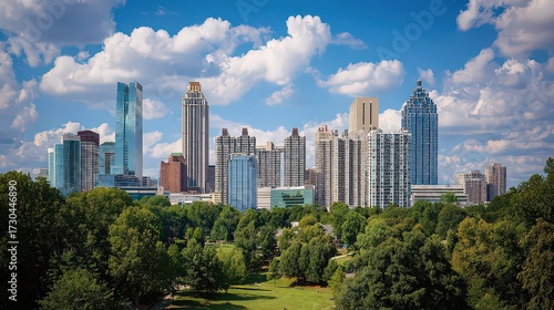skyline, city landscape, urban, building, skyscraper, tree, green, park, landscape, view, horizon, city, state, american, architecture, modern, contemporary, summer, day, cloud, blue, clear, outlook, panorama, perspective, exterior, photo, highrise, business, commercial, tour tourism, travel, vacation, nature, beauty, scenic, greenfield, country
