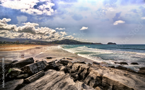 beach, atlantic, spain, wave, sand, europa, surfing, summer, cloud, sky, wild, rock, yellow, blue, nature, holiday, travel, water, wind