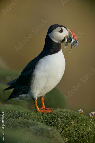 Atlantic Puffin (Fratercula arctica) with fish in its beak
