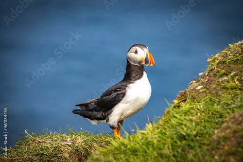 puffin, stormy, bird, nature, animal, wildlife, beak, seabird, atlantic, white, iceland, bird, wild, grass, feather, sea, black, orange, colourful, red, island, cliff