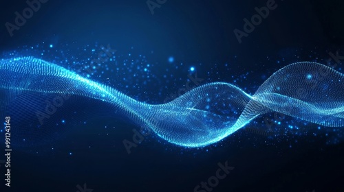 Attract Blue Line Movement, Abstract Wave Line, Light Technology Background, Copy Space