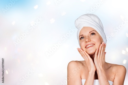 attractive, girl, happy, naked, studio, woman, bare, beautiful, charming, clean, concept, cosmetology, cute, eye, face, facial, fashion, female, fresh, gladness, hair, hand, happiness, healthy, lady, looking, make-up, model, naked, natural, people