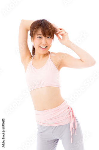 woman, people, smile, exercise, aerobic, stretching, slim, waist, fitness, diet, gymnastics, relax, cosmetic, health, beauty, exercise, gym, ware, portrait, alone, waist up, white, beauty, young, appealing, japanese, asian, cut-out, background