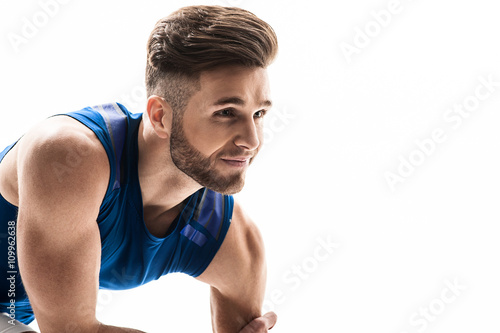 smiling, lifestyle, sport, male, athlete, start, run, athletic, young, position, runner, sprint, training, exercise, healthy, competition, man, concentration, speed, 1, muscular, sportsman, determination, ready, isolated, clothing, looking, waiting, professional, caucasian, achieve, purpose, strength, endurance, portrait, confidence, running, beautiful, concept, health, body, activewear, jogging, race, man, action, sprinter, preparation, jogger, active