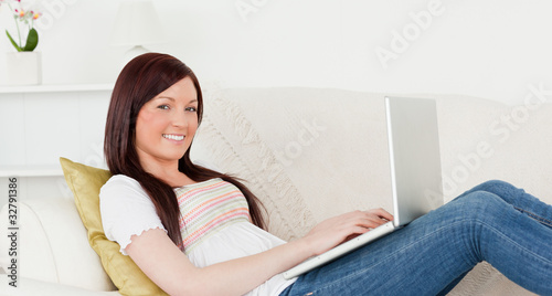cheerful, computer, enjoying, laptop, lying, pillow, smile, sofa, technology, tranquil, wireless, woman, young, adult, background, beautiful, beauty, brunette, casual attire, caucasian, cool, couch, cute, delighted, eye, face, female, fresh, girl, happy, human, isolated, nice, 1, person, portrait, pretty, red, red-haired, relax, sexy, single, sound, teenage, white, youth