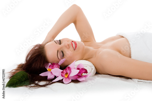 flower, lifestyle, face, body, health, human, clean, treatment, caucasian, healthy, beauty, beautiful, spa, people, medicine, make-up, skin, little, pampering, health care, white, serene, sparse, care, well-being, girl, sensuality, cosmetic, purity, relaxation, perfection, freshness, shoulder, adult, harmony, tranquil, head, cute, young, vitality, comfortable, woman, hair, massage, fashion, person