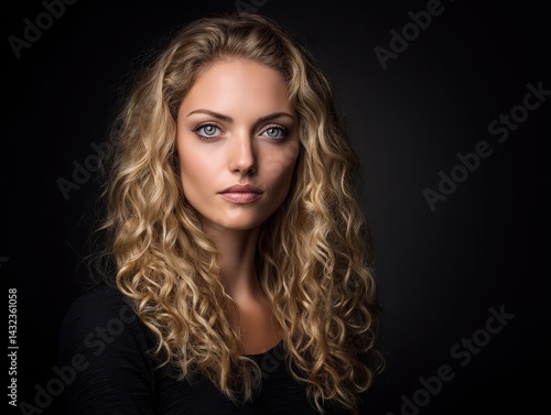 woman, attractive, hair, wavy, blond, dress, black, isolated, solid, background, high, resolution, beauty, portrait, professional, lighting, studio, setup, enhance, fashion, style, elegant, female, lady, charme, glamourous, solo, single, person, people, look, appearance, photograph, visual, aesthetic, bright, illumination, elegance