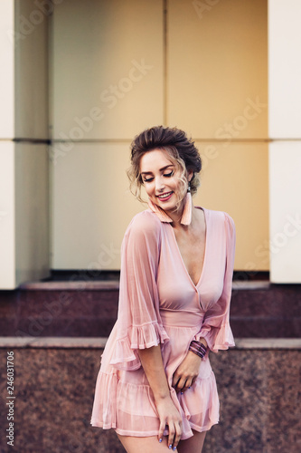 beautiful, portrait, young, woman, background, girl, female, happy, beauty, model, dress, fashion, caucasian, person, adult, attractive, spring, face, holiday, lady, hair, pretty, people, hand, smile, summer, style, sexy, celebration, joy, smiling, stylish, love, elegance, building, wall, coiffure, make-up, architecture, hairdresser, lifestyle, rejoice, good mood