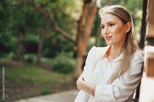 pretty, hair, people, beauty, background, female, beautiful, young, hand, lady, 1, person, portrait, woman, front, serious, single, space, successful, elegant, business, confident, out, 20s, attractive, cute, businessperson, caucasian, girl, wooden, woman, standing, summer, brown