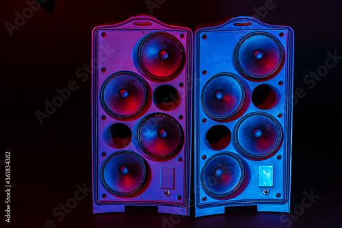 Audio system stereo column on dark background