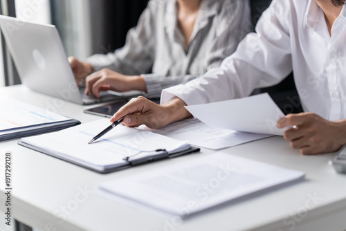 Auditor or internal revenue service staff, Business women checking annual financial statements of company. Audit Concept.