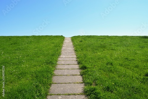 countryside, levee, heaven, nature, grass, meadow, countryside, sidewalk, green, spring, summer, azur, way, pathway, cloud