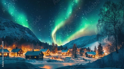 Aurora's Embrace: Nordic Village Serenity