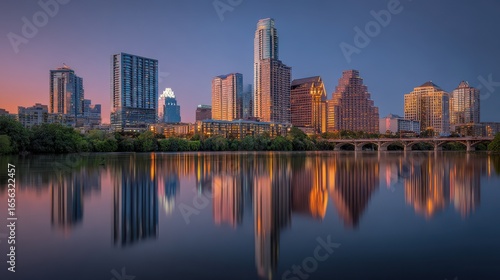 Austin Cityscape. Skyline with City Architecture Buildings and Waterfront View