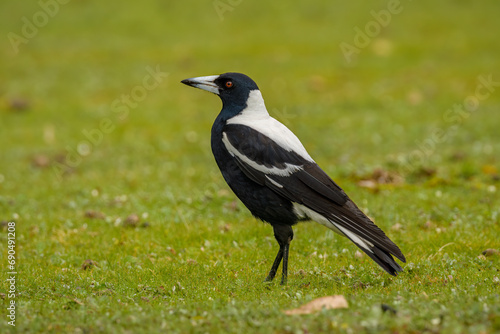 australia, kangaroo island, bird, nature, magpie, black, wildlife, animal, white, wild, beak, grass, green, bird, feather, feather