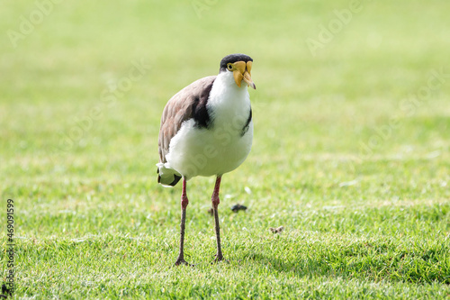 Australian native masked lapwing bird found in a field of grass at Adelaide, South Australian parklands