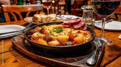 Authentic Spanish and Catalan Cuisine Delicious Fresh Seafood and Wine, Served in a Charming Courtyard Setting Perfect for Celebrating Mediterranean Culinary Traditions