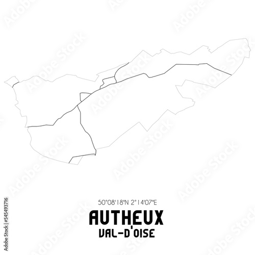 AUTHEUX Val-d'Oise. Minimalistic street map with black and white lines.