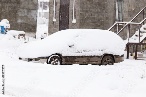 auto covered with white snow in winter