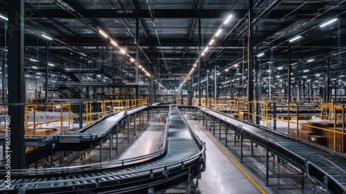 conveyer, belt, warehouse, automated, box, industrial, distribution, system, carry, large, manufacturing, factory, logistic, supply, chain, automation, storage, transportation, interior, equipment, production, technology, assembly, line, movement, package, shipping, delivery, sorting, workplace, inside, structure, good, material, order, machinery, metal, industry, work, retail, business, steel, trade, commerce, transport, empty, future, modern