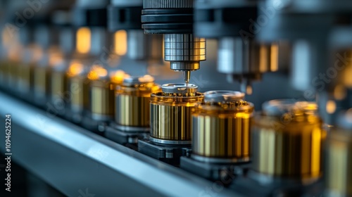 machine, automated, manufacturing, process, drilling, drill, metal, component, part, assembly, production, industry, factory, workshop, equipment, machinery, technology, innovation, efficiency, precision, quality, automation, industrial, robotic, line, conveyer, belt, row, detail, sharpened, sharp, bright, light, dark, background, steel, silver, gold, brass, shiny, design, engineering, modern, future, progress, advanced, complex