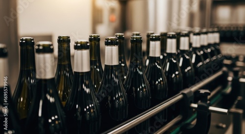 wine, bottle, production, conveyer, factory, automated, glasses, dark, modern, industry, bottling, manufacturing, plant, machinery, cardboard box, beverage, process, line, equipment, drink, alcohol, winery, commercial, system, row, transport, filling, sealed, cap, silver, efficiency, technology, business, mass production, assembly line