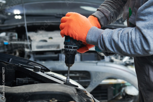 car, automobile, service, repair, garage, body, screwing, assembling, damage, repairman, men at work, work, insurance, vehicle, installing, repairing, substitution, new, disc, spare part, maintenance, replace, change, shop, professional, mechanic, technician, man, automotive, industry, suspension, fix, check, control, auto, examining, diagnostic
