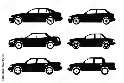 Automotive Silhouettes: A collection of sleek, black car silhouettes, showcasing the timeless design of various automobiles against a clean background.