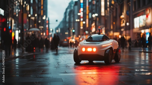 Autonomous AI-guided patrol bots monitoring public safety in urban areas: Robots patrolling city streets, scanning for security threats and reporting them in real-time.
