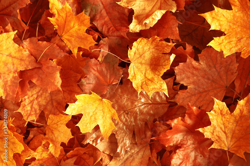 Autumn creative composition. Beautiful autumn leaves as background. Fall leaf. Flat lay, top view, copy space