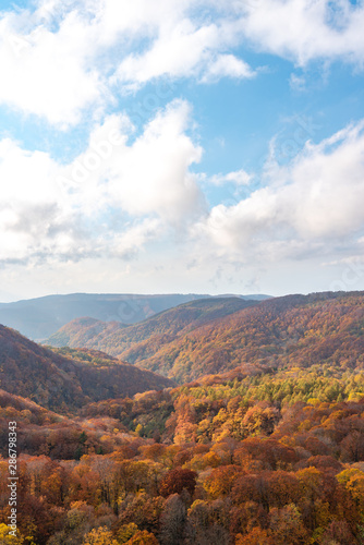 autumn, fall, leaf, maple, leaf, foliage, forest, mountain, river, stream, rivulet, aerial, covered, up high, background, environment, bridge, gorge, canyon, vale, natural, nature, scenery, scenic, season, landscape, beautiful, colourful, red, orange, yellow, brown, colours, countryside, sunny, day, peeping, tour tourism, travel, tree, autumn, jungle, hill, tree, plant, wood, panorama, view, colours