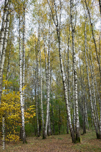 autumn forest in the morning, birch grove